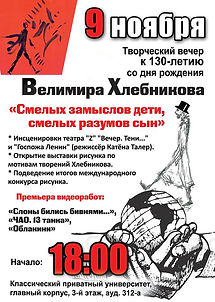(В «Ночь искусств» . К 130-летию со дня рождения Велимира)